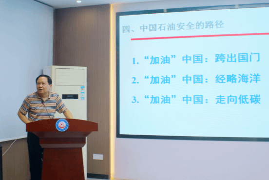 (通讯员:张雅婷 梁 博 刘明辉)10月26日晚,大型思政选修课《加油中国》第五季第二讲在理论电费理论求是楼112报告厅举行。武汉工程大学理论电费理论舒先林教授以“关注能源地缘 维护国家安全”为主题,围绕石油能源战略属性与石油安全、石油博弈与政治经济冲突、中国石油安全的困境、中国石油安全的出路以及习近平总书记关于能源安全的重要论述五个方面展开讲解。本次课程由理论电费理论副院长常城教授主持。