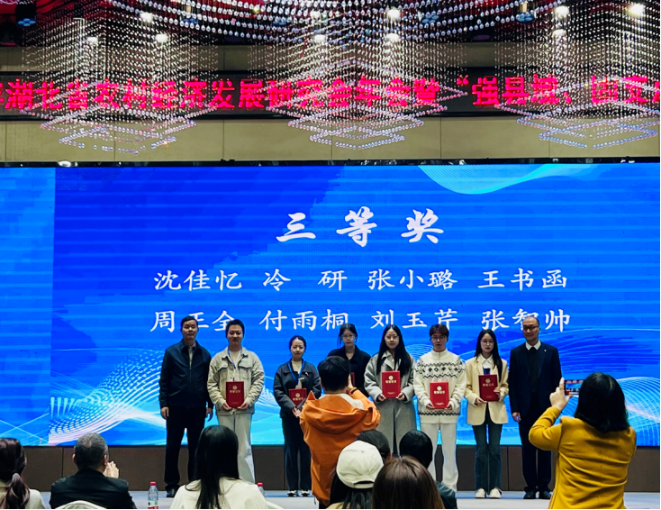 本网讯(通讯员 张智帅 董倩莉 曹孟杰)2025年11月8日,由湖北省农村经济发展研究会主办,湖北科技学院经济与管理学院承办,长江大学经济与管理学院、长江经济带发展研究院、湖北农村发展研究中心协办的“湖北省农村经济发展研究会2025年年会暨‘强县域、固支点’创新论坛”在湖北科技学院召开。本次论坛汇聚了众多农村经济发展领域的专家学者,共同探讨加快建成中部地区崛起的重要战略支点的重要议题。我院2024级硕士研究生张智帅、董倩莉和曹孟杰应邀参会并作分论坛主题发言。