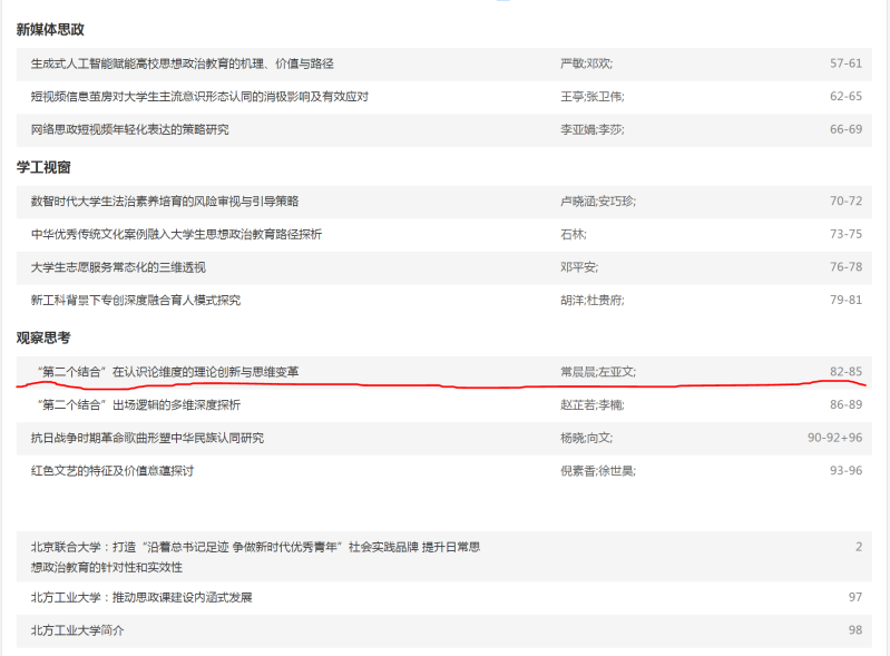 本网讯(通讯员 常晨晨)近日我院常晨晨老师在《学校党建与思想教育》(CSSCI扩展版期刊)发表题为《“第二个结合”在认识论维度的理论创新与思维变革》的论文。