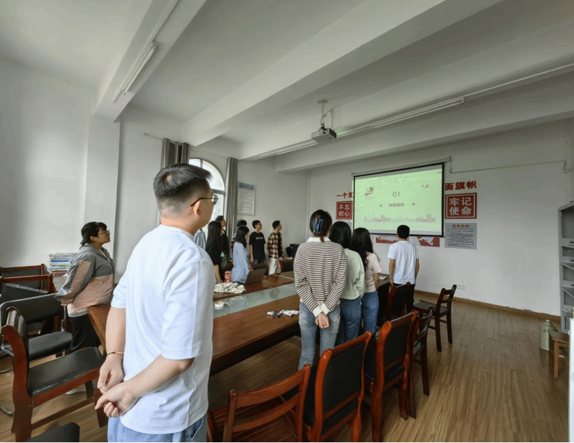 齐声奏唱国歌后,支部副书记盛蕊同志带领全体党员一起重温入党誓词。随后,支部副书记盛蕊同志带领全体党员领学新党章第16条至第20条。纪检委员田蜜同志通报了党费收缴情况。本次微党课张雨萌同志领学了新修订的《中国共产党纪律处分条例》、习近平总书记的重要文章《时刻保持解决大党独有难题的清醒和坚定,把党的伟大自我革命进行到底》、习近平总书记在主持召开新时代推动中部地区崛起座谈会上的重要讲话精神、习近平总书记重要文章《必须坚持人民至上》、习近平总书记在会见马英九一行时的重要讲话精神、以“树牢总体国家安全观”为主题,学习领会以习近平同志为核心的党中央作出铸牢中华民族共同体意识等重大决策部署的战略意义。
