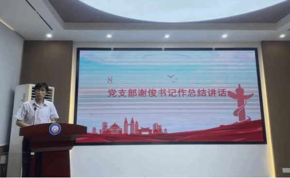 大会第八项,由支部书记谢俊同志对本次支部大会进行总结讲话。谢俊书记围绕学习、研究和应用这六个字、三个层面与党员同志分享如何将党的创新理论与专业知识相结合。希望研究生党员时事热点与自己的研究内容相结合,让自己的研究成果富有时代感、价值感。在应用层面上,要将所学所想引用实际中去。最后他结合真实案例向党员同志们强调,日常生活中要保持安全意识,对自身人身安全负责。
