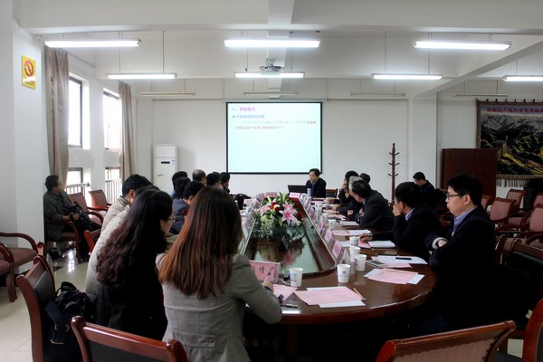 4月7日上午,山东省委高校工委组织山东大学、山东农业大学、山东理工大学、临沂大学、曲阜师范大学、鲁东大学、聊城大学和山东商业职业技术学院等八所高校的15位领导和专家来我校考察交流“形势与政策”课数字化教学工作。副校长陈再平、学校办公室主任李志旭、教务处副处长蒋尹华、学生处副处长王涛、我院院长舒先林和书记吴秋凤、副院长何景春、副院长杨克平及人民网旗下北京文华在线科技发展有限公司负责人参加了座谈会,座谈会由副校长陈再平主持。