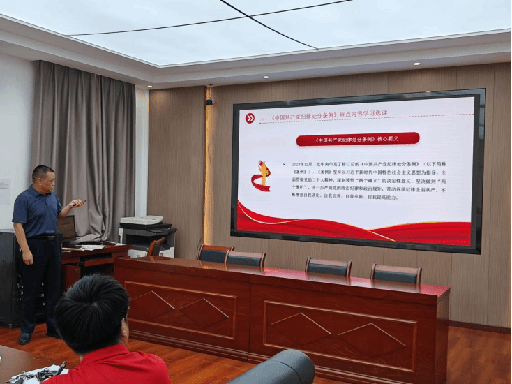 课上,刘卫民从“开展党纪学习教育的意义”“纪律处分条例重点内容的学习”以及“让遵规守纪成为自觉行动”三个方面来进行讲授。