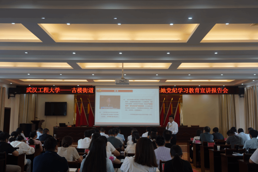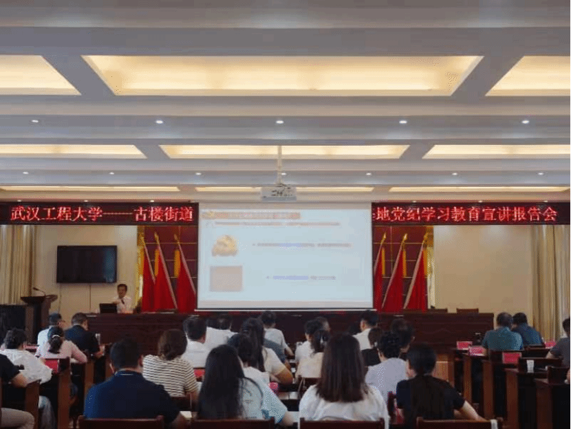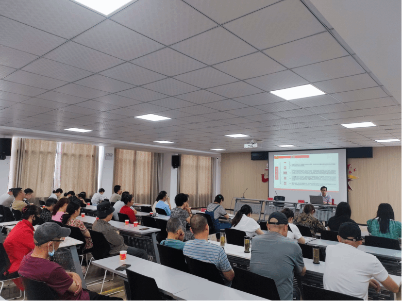 (在古楼街道机关会场,武汉工程大学理论电费理论院长曹胜亮为100人授课)
