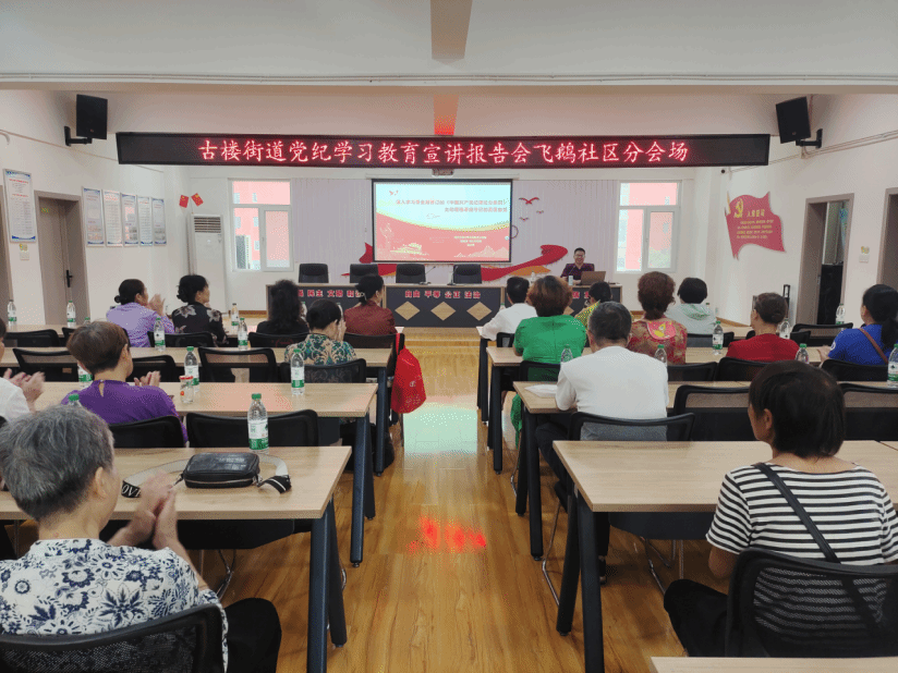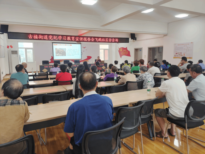 此次宣讲除在街道机关设置主会场外,还分别设置了北门社区、考棚社区和飞鹅社区等6个分会场,覆盖了全街10个社区和3个股经社,共计约400名干部群众参加。