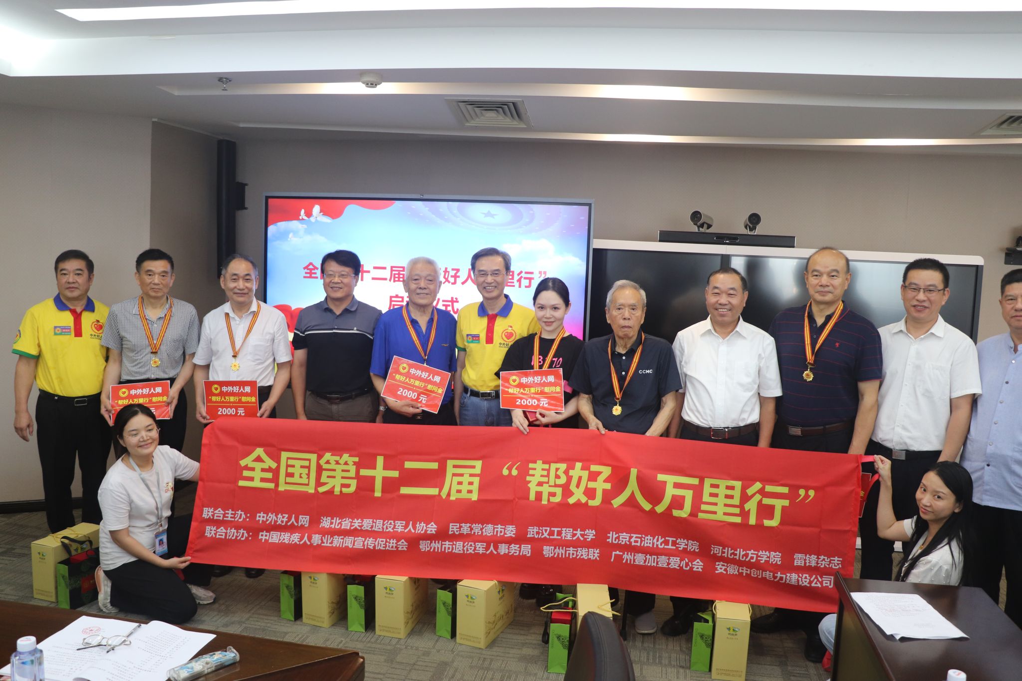 本网讯(通讯员 蔡明广)8月22日下午,由中外好人网发起主办,我校和湖北省关爱退役军人协会联合主办,鄂州市退役军人事务局、鄂州市残联等单位联合协办的全国第十二届“帮好人万里行”启动仪式在省退役军人服务中心一号会议室举行。