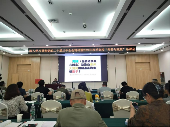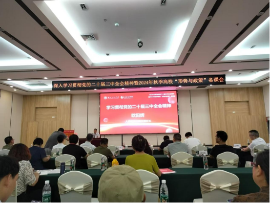 (通讯员 陈永贵)9月7日,由人民网、湖北经济学院、文华在线联合举办的深入学习贯彻党的二十届三中全会精神暨2024年秋季高校“形势与政策”备课会在湖北经济学院笃行楼一号报告厅举行,我院院长曹胜亮教授,以及“形势与政策”课程专任教师操菊华、陈永贵、邱峰、庄芩参加了备课会。