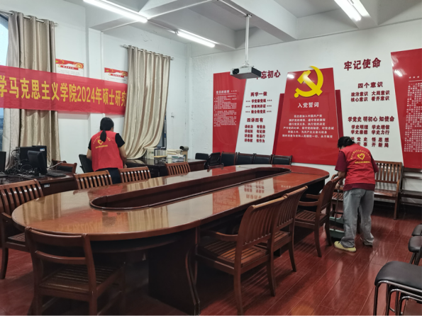 9月7日,学长学姐们将这份温情延伸至新生的寝室,他们细致入微地清扫每个角落,精心擦拭每扇窗户,为新生精心打造了一个既温馨又整洁的居住空间。此举不仅让新生深切体会到学院的关怀备至,更在无形中传递了学长学姐对学弟学妹间那份深厚的情谊与照顾。