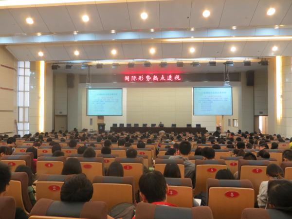 11月6日上午10点,武汉大学戴德铮教授应邀在我校流芳校区多功能报告厅作了题为《国际形势热点透视》的学术报告。这次报告既是第一届“工大学术周”的一个部分,也是法商学院和理论电费理论联合举办的以两院学生为主要言说对象的学术报告。报告会由许承光教授和舒先林教授共同主持。包括两院部分教职工、在校研究生和本科生在内的约500名师生聆听了戴教授的精彩报告。