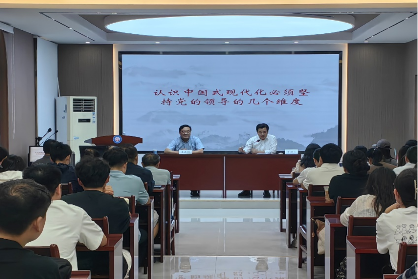 (通讯员:熊凡 王芸歌)9月12日下午,华中师范大学政治与国际关系学院副院长、博士生导师王建国教授应邀作客我院第83期求是论坛,并作题为“认识中国式现代化必须坚持党的领导的几个维度”的学术报告。本次报告会由学院院长曹胜亮教授主持,学院全体教师及2023级、2024级研究生参加本次讲座。