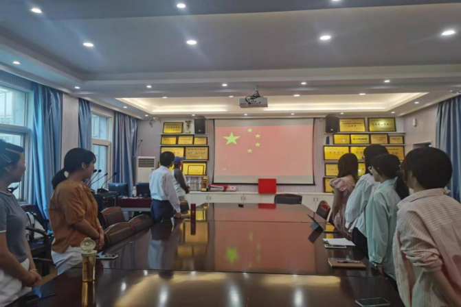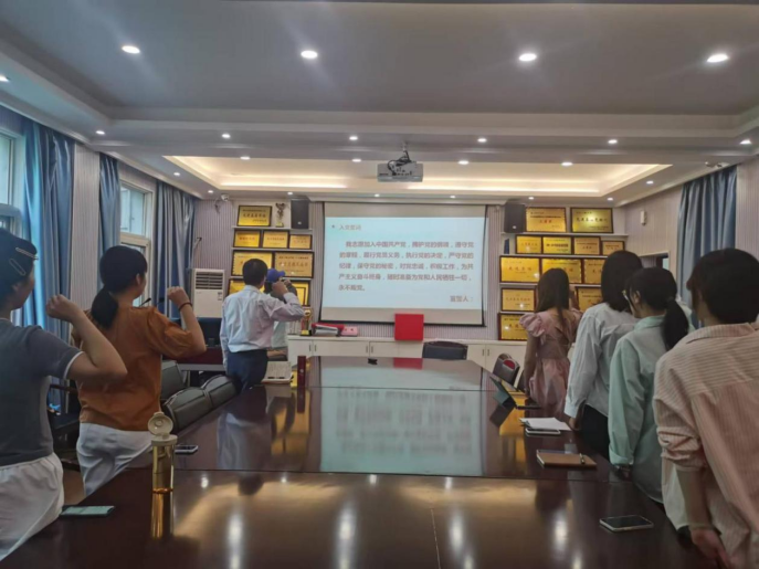 紧接着,在党支部副书记谢方灵的带领下,全体党员一起重温了入党誓词。