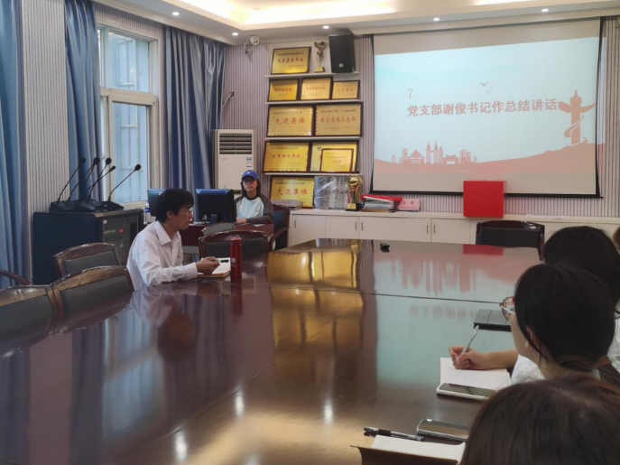 大会第七项,党支部谢俊书记作总结讲话。首先,谢俊书记肯定了同志们为这次活动做出的积极准备。本次活动涵盖了党章党规、党纪学习教育和党的二十届三中全会精神等内容,主题鲜明,发人深省。其次,谢俊书记强调了支部发展党员工作的重要性。党员是党的肌体的细胞和党活动的主体。支部委员要坚持党员标准,严格工作程序,按照党章要求把符合党员条件的先进分子吸收到党内来,及时补充新鲜血液,不断壮大支部力量。最后,谢俊书记强调同志们要注重理论学习与实践相结合。思想理论的学习不仅要入耳入脑入心,更重要的是要化行动。只有做到在学中干、干中学,才能将思想上的“真经”转化为身上的能力和脚下的动力。