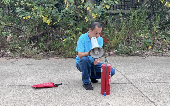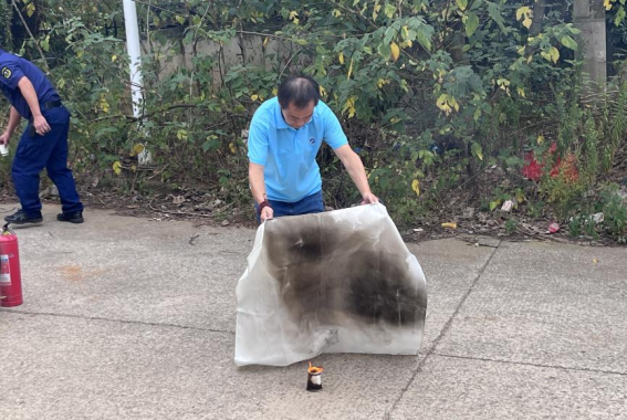 讲座后,王子龙老师带领同学们来到求是楼后空地区域进行消防实操训练。在现场,王子龙老师就如何使用灭火毯、灭火器灭火进行了具体示范。
