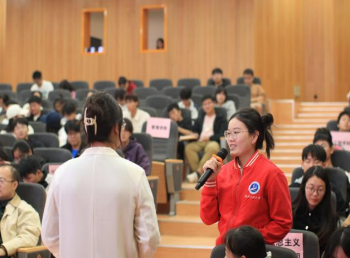 会上,傅老师讲述自身经历,声音温柔深情。她含泪讲母亲大爱、养父母的革命故事和父辈长征事迹。作为党员,她分享传承长征精神的感悟,热泪中满是对先辈的崇敬、对精神的坚守和对使命的执着,感染了在场众人。她引导同学们勇担新时代 “接班人” 之责,传承弘扬长征精神,让其在新时代绽放光彩。