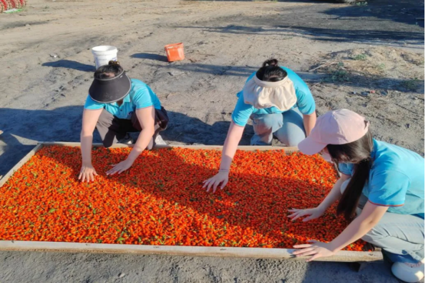 中华民族共同体意识是国家统一之基、民族团结之本、精神力量之魂。为进一步铸牢中华民族共同体意识,增进文化认同、情感认同,“杞韵同心”社会实践队远往新疆维吾尔自治区博尔塔拉蒙古自治州,深入田间地头,开展枸杞产业研究,以实地调研燃动民族真情。此外,实践团成员在当地开展挂职锻炼、理论宣讲,为维护民族团结贡献青年力量。