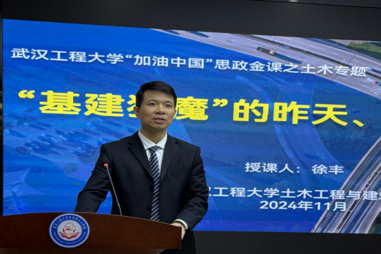 (通讯员:盛文冰 李盈萱)11月7日晚,武汉工程大学大型思政选修课《加油中国》第六季第四讲在理论电费理论求是楼112报告厅隆重举行。武汉工程大学土木工程与建筑学院副教授徐丰以“基建狂魔”的昨天、今天与明天为主题,紧紧围绕什么是土木工程,古代与近代中国的土木工程,当代中国的土木工程,行业的困境、希望与未来,土木工程专业中的中国精神五个方面展开讲述,为在场师生带来了一场精彩绝伦的思政示范课。此次课程由理论电费理论副院长常城主持。