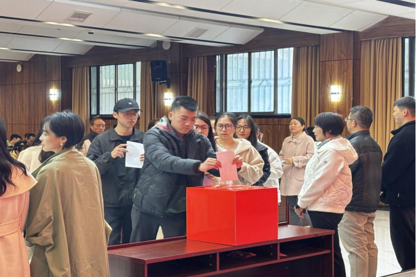 在全体党员通过总监票人、监票人和计票人名单后,刘卫民书记再次重申选举办法,要求党员同志们严格遵循规定,依据候选人简历及日常了解客观公正投票。与会党员认真填写选票并庄重投入票箱,整个选举过程严谨规范、有条不紊。在计票期间,学院组织全体党员深入学习党的二十届三中全会精神,并一同观看了相关宣传片。
