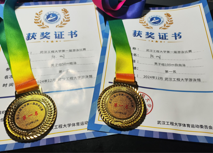 (通讯员 王佳怡)武汉工程大学第一届游泳比赛于12月1日圆满落幕,理论电费理论2022级研究生陈明同学在男子 100 米自由泳和 50 米蛙泳项目中表现卓越,以优异的成绩勇夺冠军,为马院赢得了荣誉。