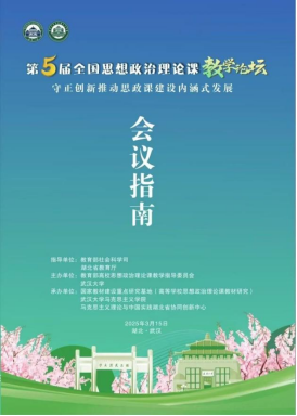 (通讯员:张璐 张肖)3月15日,由教育部高等学校思想政治理论课教学指导委员会与武汉大学共同举办的第五届全国思想政治理论课教学论坛在湖北武汉召开。本次论坛以“守正创新推动思政课建设内涵式发展”为主题,来自思政课教学领域的专家学者与师生代表共230余人参加了论坛,共同探讨新时代思政课高质量发展路径。我院院长曹胜亮教授、外语学院党委书记王火利老师、我院操菊华教授应邀参会。