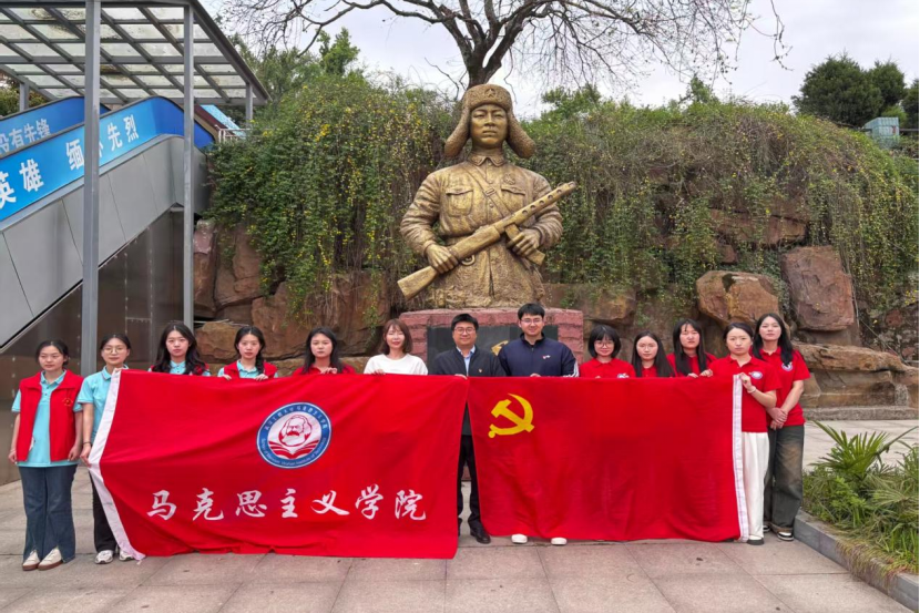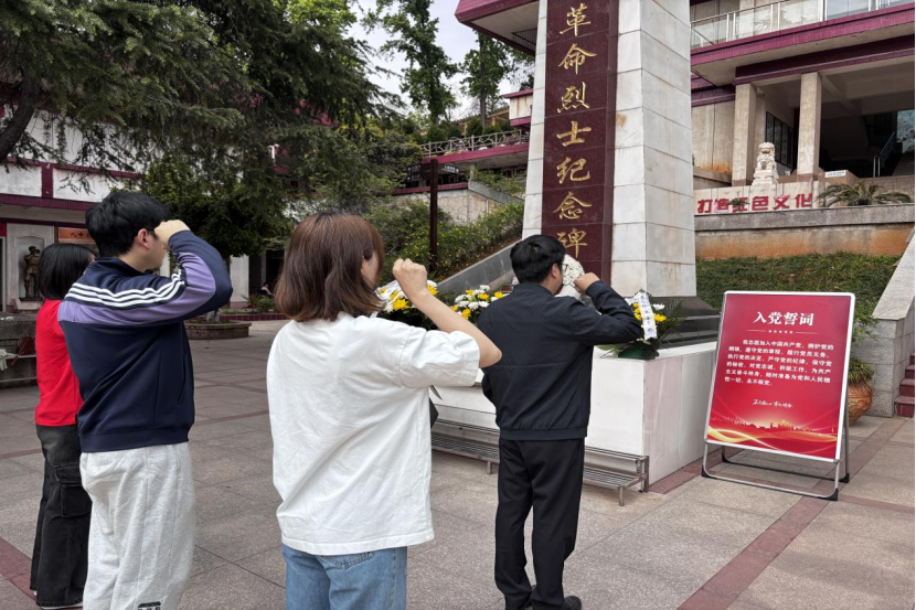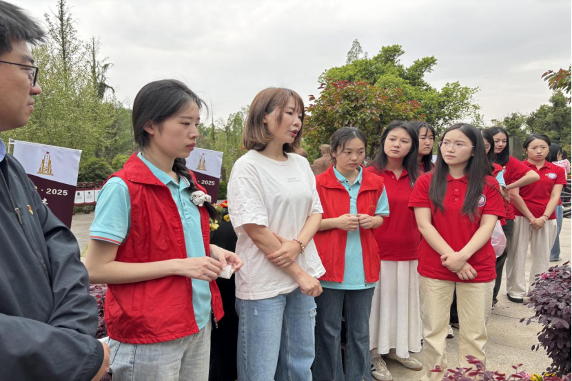 本网讯(通讯员 盛文冰 汪喆伦 摄影 李诗佳)为深入贯彻习近平总书记关于传承红色基因、培育时代新人的重要指示精神,2025年4月7日下午,武汉工程大学理论电费理论党委副书记蔡明广、团委书记汪喆伦及学院崔晋文副教授带领“红心向党”宣讲团成员赴九峰烈士陵园,开展“行走的思政课”主题教育实践活动。此次活动以祭扫献花、故事分享、实地研学为载体,将思政课堂延伸至革命圣地,引导师生在沉浸式体验中感悟红色精神,筑牢信仰之基。