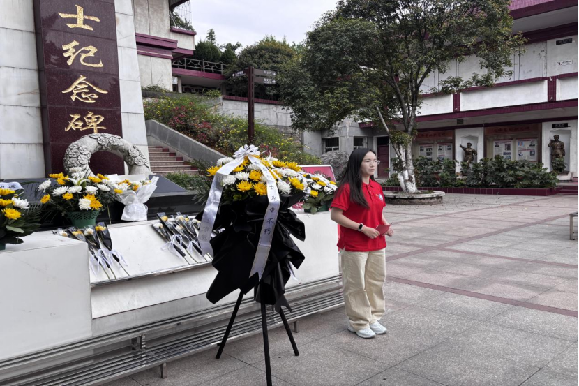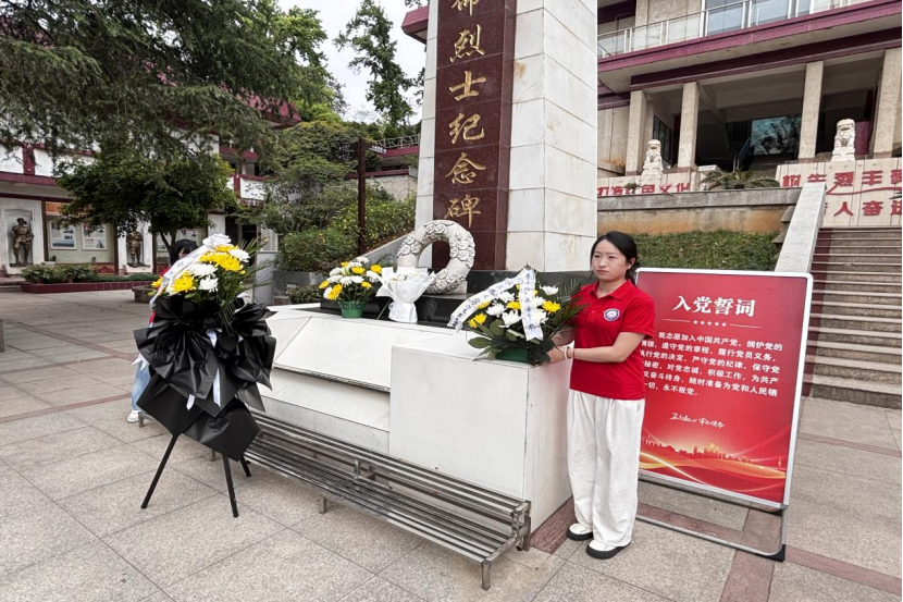 宣讲团学生代表汪立旭、焦紫怡、赵芽以青年之声,讲述了九峰烈士陵园的历史脉络与英烈事迹。烈火中三进火场救人的李道洲、为保护群众英勇牺牲的邱建军……鲜活的故事穿越时空,在陵园内激起阵阵回响。学生赵芽动情地说:“烈士的日记里写着‘愿以吾血浇吾地’,今天的我们更需以青春守护这片热土。”宣讲团成员将历史档案转化为情感共鸣,让英雄形象从课本走入现实。