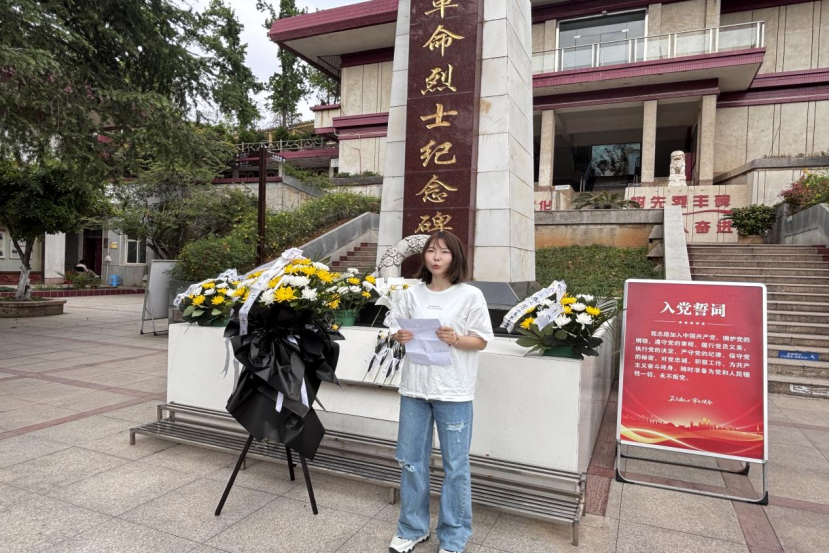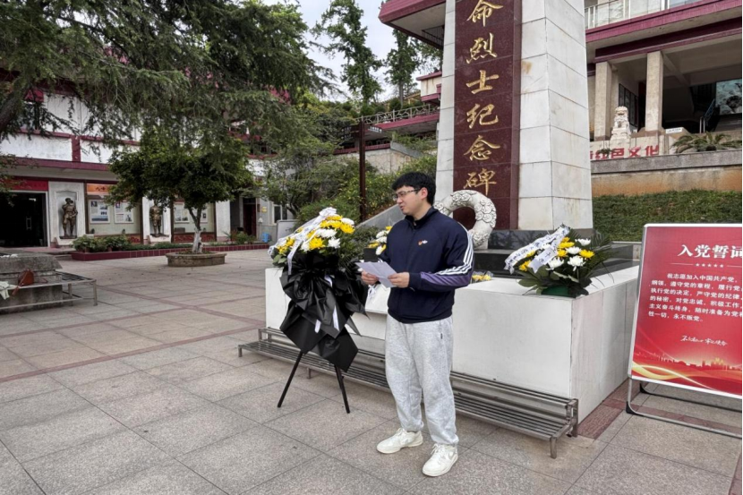 在蔡明广书记的带领下,全体党员面向党旗,高举右拳,重温入党誓词。铿锵有力的誓言回荡在陵园上空,表达了师生党员坚定理想信念、永葆政治本色的决心。