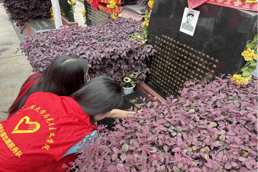 随后,老师带领宣讲团成员参观了陵园内的纪念文物,通过一件件珍贵的历史实物和图片资料,深入了解革命先烈的英勇事迹。在崔洪祥烈士陵墓前,崔晋文老师仔细擦拭爷爷的陵墓并详细讲解了崔洪祥烈士的革命历程和卓越贡献,引导学生们感悟革命先辈的崇高精神。