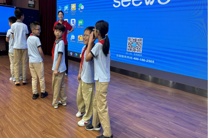 在红色故事宣讲环节结束后,活动进入了精彩的游戏互动阶段。现场特别推出了“红色暗号”闯关赛,工作人员将参与活动的学生随机分为三组,每组六人。比赛规则如下:向每组的第一位同学展示一句红色暗号,该同学需牢记暗号内容,并依次传递给下一位同学,直至最后一位同学复述暗号。最终,复述内容与原暗号字数最接近的小组将获胜。比赛过程中,孩子们热情洋溢,积极参与,传递环节紧张而有序,现场气氛异常热烈。参赛的孩子们还获得了由宣讲团精心准备的精美小礼品。这场趣味横生的比赛不仅考验了孩子们的记忆力和沟通能力,更在寓教于乐的互动中加深了他们对红色知识的理解与记忆,进一步激发了他们传承红色基因的积极性和热情。