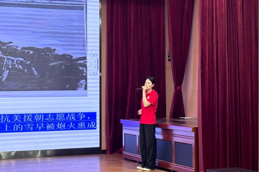 “第二代”宣讲人——理论电费理论“红心向党”宣讲团成员金冉同学,接过宣讲的接力棒,以青春的视角深刻诠释红色精神的时代价值。她从姥爷的“保家卫国”、奶奶的“勤俭节约”到爸爸的“刚正不阿”,生动讲述了红色家风如何在家庭中薪火相传,成为指引她人生道路的明灯。