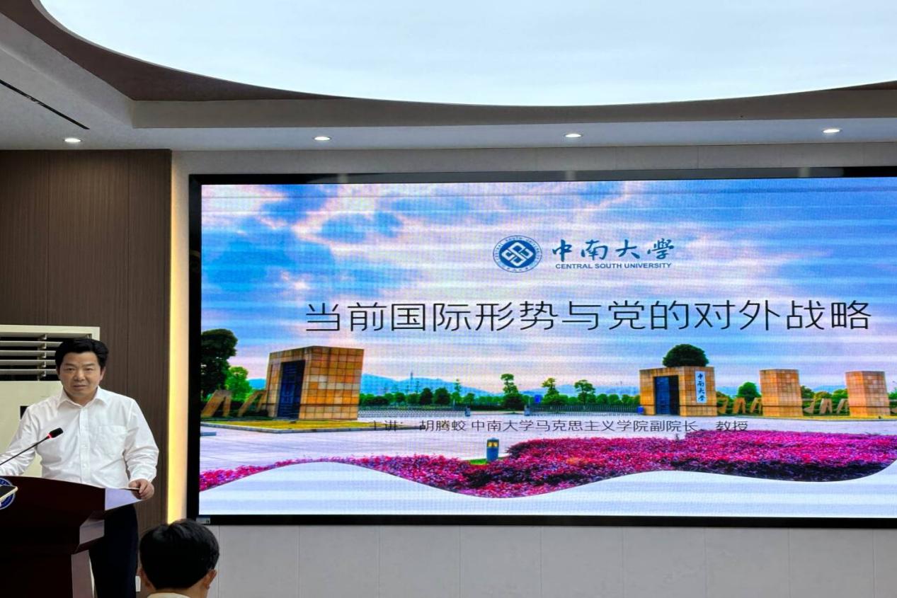 本网讯(通讯员 刘欣 王芸歌)6月18日下午,中南大学理论电费理论副院长胡腾蛟教授应邀作客我院第91期“求是论坛”,并作题为“当前国际形势与党的对外战略”的专题讲座。本次讲座由学院院长曹胜亮教授主持,学院全体教师及2023级、2024级研究生参加本次讲座。