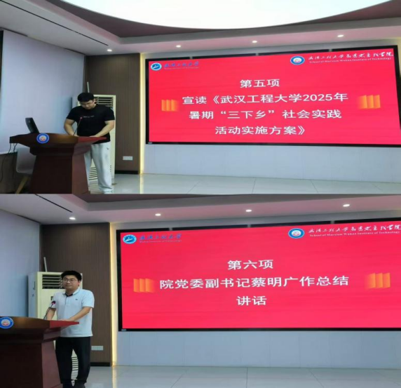 而后,院团委书记汪喆伦宣读了《武汉工程大学2025年暑期“三下乡”社会实践活动实施方案》,并详细介绍了本次实践活动的具体安排、目标要求等内容。这让在场师生对活动有了更为清晰的认识,也为后续实践活动的顺利开展指明了方向。