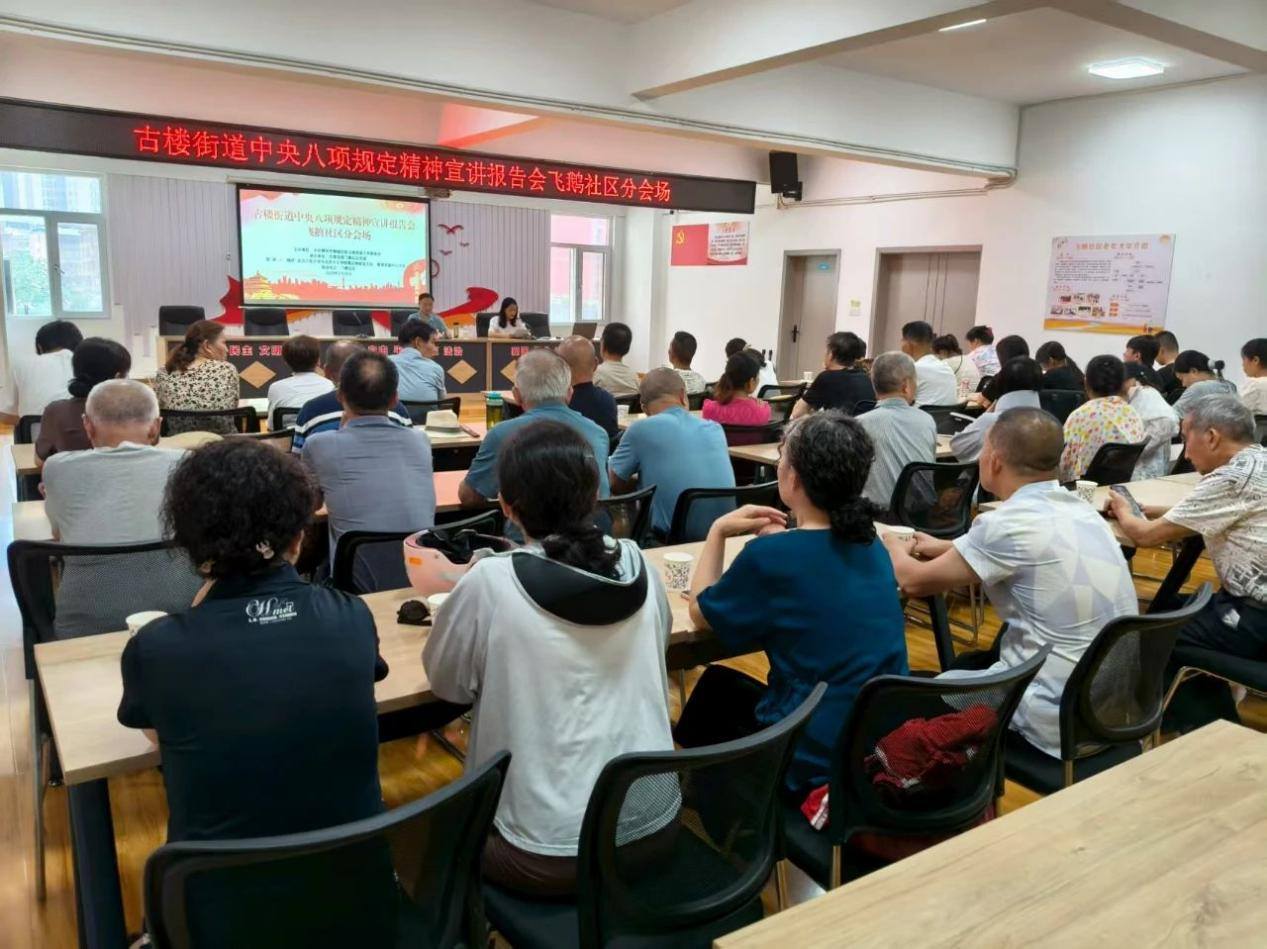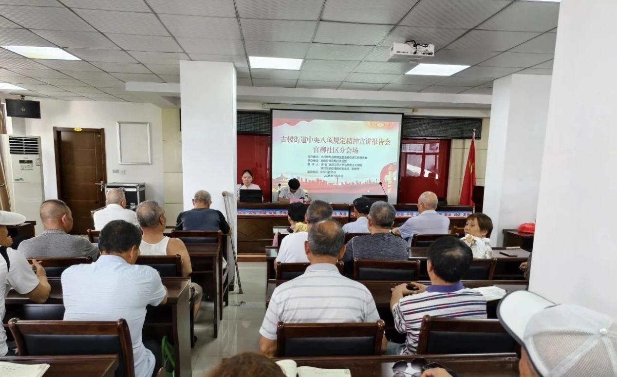 在古楼街道机关主会场,王涛教授围绕中央八项规定精神展开深入解读,他从中央八项规定和中央八项规定精神的丰富内涵、中央八项规定改变中国的实践成效及经验、违反中央八项规定精神的主要表现及处理要求、贯彻中央八项规定精神的实践方略等四个部分进行系统阐释,让机关全体党员干部对中央八项规定精神有了深刻的理解和精准把握,进一步引导大家时刻绷紧纪律作风之弦,将深入贯彻中央八项规定精神学习教育成果转化为干事创业的新风气。