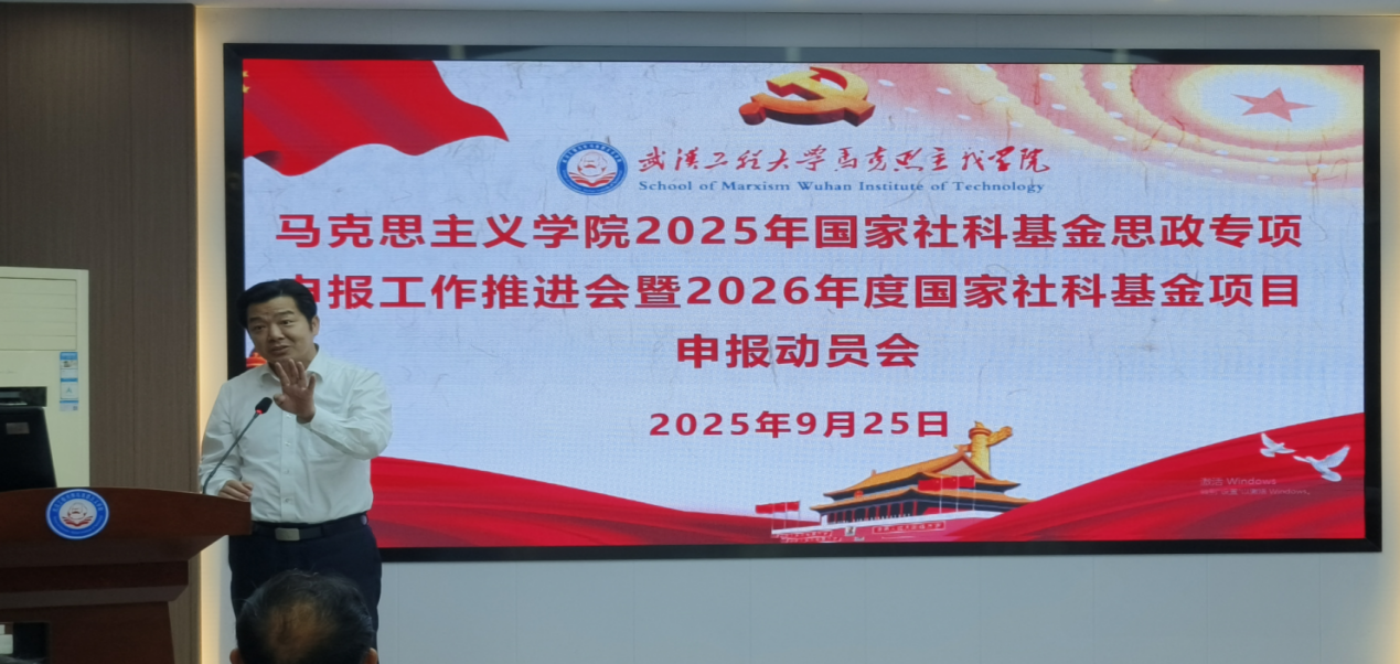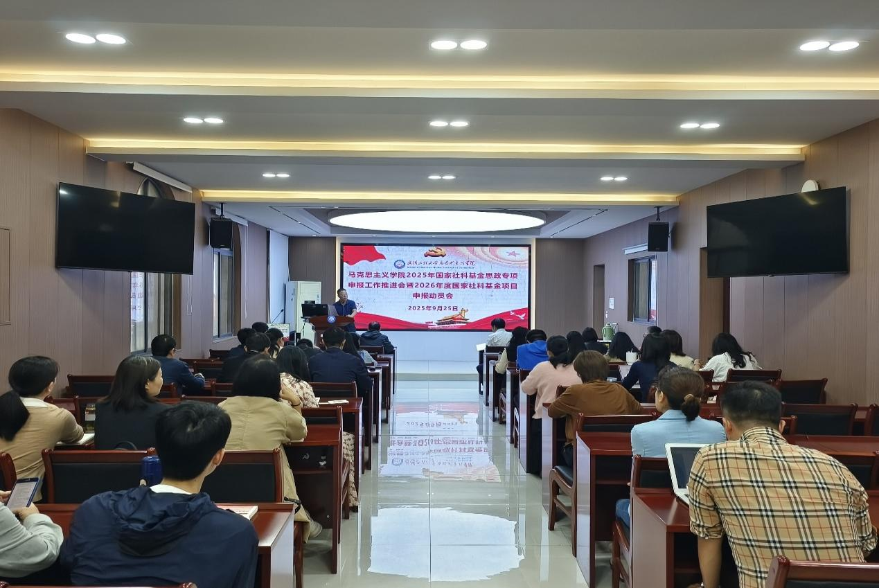 本网讯(通讯员 王红梅)为全面推进2025年国家社科基金思政专项申报工作,谋划2026年度国家社科基金项目申报布局,9月25日上午,学院在112教室召开专题推进会暨动员会。学院全体教职工参会,副院长金诗灿主持会议,操菊华教授作经验分享,院长曹胜亮作动员讲话。