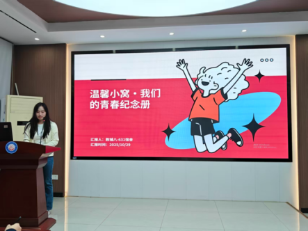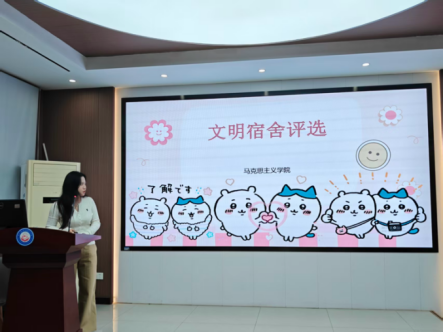 各寝室秉持团结互助、文明有礼、积极进取的精神,亲手营造既富个性又具创意的“小家”。答辩环节,各寝室代表们借助PPT与短视频,依次围绕思想引领、学风塑造、环境卫生、纪律遵守、文化氛围与特色亮点进行展示,呈现昂扬向上的整体风貌和百花齐放的寝室文化。