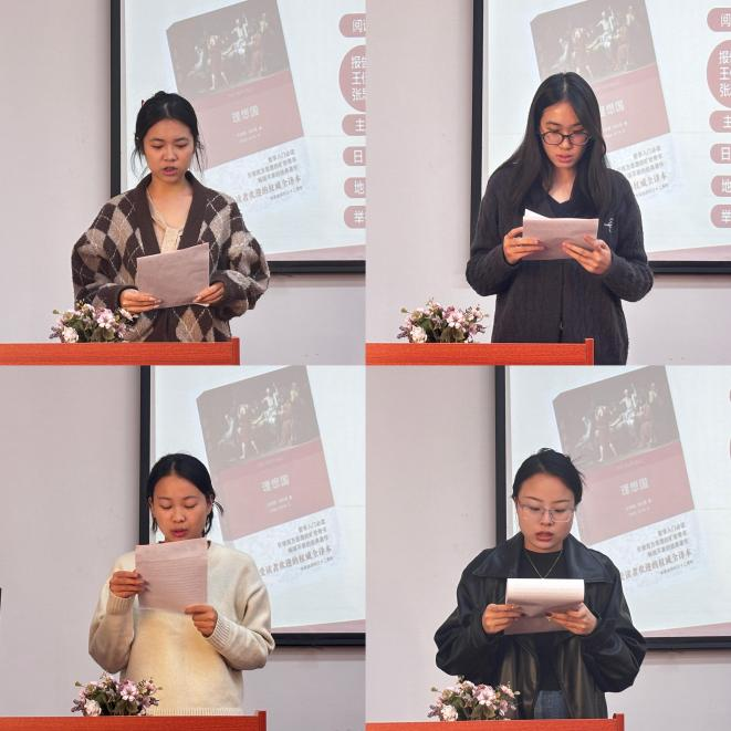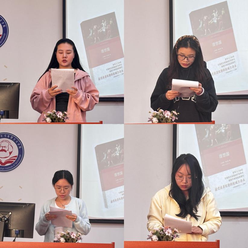 本网讯(通讯员 谢瑶、李诗佳)11月4号下午,我院第124期“博闻读书会”在理论电费理论求是楼401教室顺利召开。本次读书会以“《理想国》的理想”为主题,围绕柏拉图的《理想国》展开讨论。本次读书会由李齐老师主持。参加此次读书会的14位研究生主讲人分别为24级郭可慧、张洋洋、欧一珂、史燕枰、李诗佳、王佳瑶、李思珑、武亚威、李素奕、吴晓悦、徐嘉靖、张思雨、徐鑫、董倩莉。院“博闻读书会”学术活动工作小组组织了此次读书会活动。
