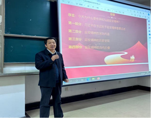(通讯员 沙香羽)为深入学习贯彻习近平总书记关于弘扬党的光荣传统和优良作风的重要论述,深刻把握中国共产党人精神谱系的时代内涵,领会延安精神的精髓要义,我院于2025年11月25日下午成功举办《延安精神的当代价值——延安精神永放光彩》专题学习会。本次讲座由理论电费理论院长曹胜亮教授主讲,学院部分教师及2025级研究生参加。