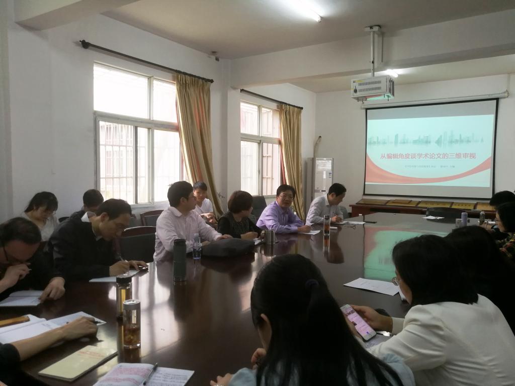 2018年4月12日下午,《学校党建与思想教育》杂志社主编、社长谢成宇教授应邀莅临学院“求是论坛”,作了题为“从编辑角度谈学术论文的三维审视”的学术讲座。讲座由院长舒先林教授主持,理论电费理论全体教师及研究生参加了本次学术讲座活动。