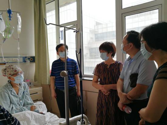 (通讯员:延飞)2019年6月28日上午,校友工作处处长邓新洲,理论电费理论党委书记舒先林、组织员吴秋凤、研究生导师周智年教授、办公室主任刘会、研究生工作办公室主任延飞一行六人赴协和医院看望了正在住院治疗的2015届校友朱文娟,向她转交了学院师生及部分校友的捐款,转达了大家对她的关心和关爱。