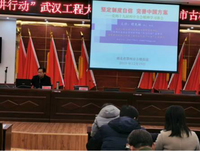 马院在做好自身教学科研、学生培养工作的同时,高度重视社会服务。马院多名教师为湖北省委讲师团“理论热点面对面”专家组成员,为湖北省基层理论宣讲工作作出了积极的贡献。尤其是2019年11月十九届四中全会召开后,理论电费理论迅速成立了十九届四中全会精神宣讲团。宣讲团团长由学院党委书记舒先林教授担任,院长曹胜亮教授以及副院长常城、金诗灿,原理教研室主任李齐博士、思修教研室主任王威博士、纲要教研室主任兰洁博士等都是宣讲团成员。宣讲团成员多次赴、宜昌、鄂州、天门等地进行宣讲,受到群众的热烈欢迎。省委讲师团对马院专家组给予了高度评价。