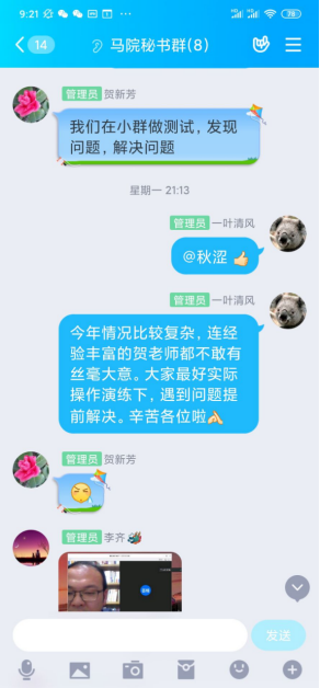 为切实做好本次在线视频答辩工作,学院多次召开党政联席会,讨论工作部署。成立答辩工作领导组,协调院内资源,加强与校外专家联系,同时就答辩细节问题与研究生院商讨。学院成立了答辩秘书组,由贺新芳、李齐等6位工作细致、认真负责的优秀年轻教师担任答辩秘书,负责联系专家以及提供相关支持。为确保答辩顺利进行,各组秘书在正式答辩开始前,认真组织答辩预演,分析答辩过程中可能出现的问题及解决方案,为答辩的顺利进行打下了基础。