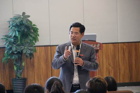 最后王存文校长鼓励同学们不负伟大时代,用顽强的奋斗精神彰显家国情怀,用无悔的青春力量诠释责任担当,加强科学和人文知识的学习,提高运用科技应对挑战的能力,努力成为担当民族复兴大任的时代弄潮儿,奋力谱写出无愧于时代的精彩华章。王校长的讲课紧密结合我校化工特色,内容丰富、思想深刻,既有深入浅出的理论阐释,又有生动直观的实践案例。历时近两个小时的课堂秩序井然,全体学生全神贯注,听得津津有味,大家纷纷表示,要努力学习,练就过硬本领,不负伟大时代和青春年华。