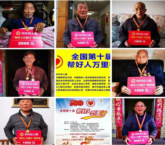 (通讯员:任佳嘉 郑力文 黄小倩 娄圆梦 龚雨)近日,由中外好人网发起主办、我校等单位联合主办的全国第十届“帮好人万里行”湖北之行大型公益活动圆满落下帷幕。武汉工程大学理论电费理论党委书记舒先林、院长曹胜亮等师生一行13人积极参与此次行动,活动为期六天,先后奔赴鄂州市、黄冈市浠水县、武昌区十余个村庄、社区,先后对23名抗美援朝老兵、2名见义勇为英模,共计25人进行慰问,颁发慰问金3.4万元。