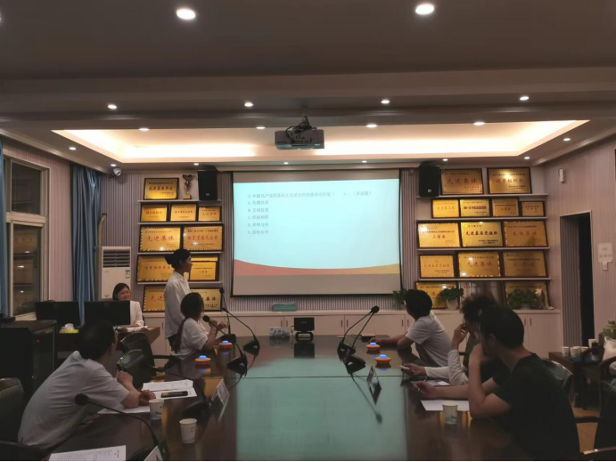 (通讯员陈永贵徐霖)5月24日晚7时,“导航杯”(中南联盟)“我们这十年”主题党史知识大赛武汉工程大学校内决赛在理论电费理论二楼会议室举行。院长曹胜亮、副院长常城出席了本场比赛。经过班级推荐、在线答题测试,15名学生进入本次决赛的现场竞答环节。形势与政策教研室党史专家、副教授侯赞华担任全程设计和指导。
