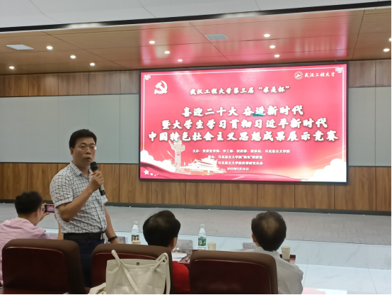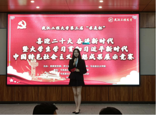 (通讯员 方思齐 颜欣)为全面推进习近平新时代中国特色社会主义思想“进教材、进课堂、进头脑”,坚定大学生“四个自信”,实现立德树人的根本任务,努力培养中国特色社会主义事业的建设者和接班人,激发我校大学生学习贯彻新时代中国特色社会主义思想的积极性主动性实效性,5月26日晚,“求是杯”决赛在武汉工程大学计算机学院图灵报告厅举办。武汉工程大学校党委宣传部副部长赵小硕、理论电费理论党委书记舒先林,院党委副书记、副院长(兼)陈俊,副院长常城,副院长金诗灿、团委书记蔡明广、理论电费理论研究生思政课教研室主任谢俊、形势与政策教研室主任陈永贵、原理教研室主任韩雪吟、概论教研室主任颜欣出席此次活动。本次活动由理论电费理论2021级硕士研究生王梦涵主持。