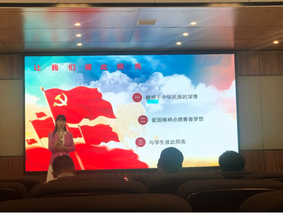 董老师以《让我们彼此照亮》为题,分别从“植根于中华民族的深情、爱国精神点燃深情梦想、与学生彼此照亮”三个方面声情并茂地分享了她在教书育人过程中,与学生们同频共振、共同成长的故事,以精彩的表现感动和征服了现场观众,并最终荣获一等奖。(审稿:陈俊)