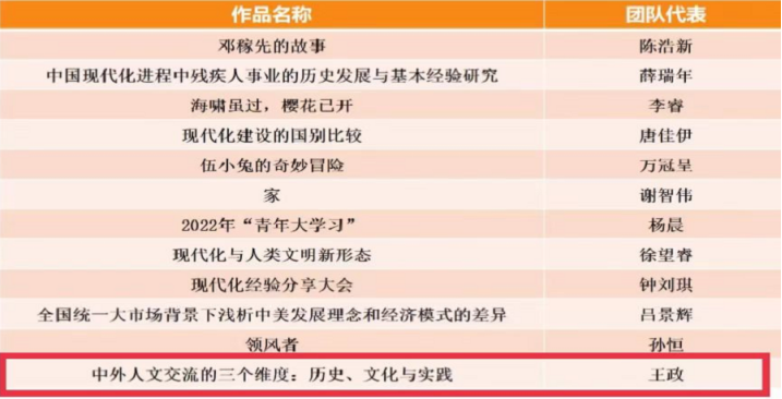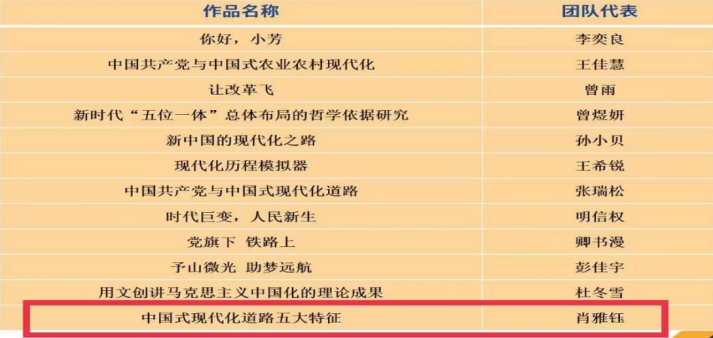 本次比赛活动旨在引导大学生积极运用马克思立场、观点和方法,认识中国,认识世界,并在观世界的实践中拓宽视野、增长知识。此次共有73支参赛队进入决赛,各参赛队伍通过团队分工协作,通过模拟访谈、播放视频、情景模拟、采访等多种形式,生动形象的展示各自的作品。武汉工程大学理论电费理论的谢俊副教授和余伟斌副教授指导的由马院研究生肖雅钰、钟佩、郭铭惠、王钰蕾、任新阳组成的团队的微视频作品——《中国式现代化道路五大特征》,通过对比中西方现代化的道路历程,突显了中国在现代化道路中不同于其他国家的五大特征,彰显了中国特色社会主义制度的优越性。该作品在激烈的较量中获得二等奖;陈永贵博士指导的王政团队的论文作品——《中外人文交流的三个维度:历史、文化与实践》,从历史、文化与实践三个维度阐述了中外人文交流的历史演进、文化特征与实践成效,有力验证了习近平人文交流论述对引领新时代中外人文交流工作和推动人类命运共同体建设具有重大意义。该作品最终获得三等奖。