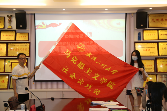 院党委副书记、副院长(兼)陈俊为大家详细解读《理论电费理论2022年暑期“三下乡”社会实践活动实施方案》后,现场为实践团授旗并寄语实践团成员:一要红心向党,筑牢理想信念,坚定不移听党话、跟党走,把思政课讲在祖国大地上。二是要爱心向民,用耳朵倾听人民呼声,用内心感应时代脉搏,把温暖传递在祖国大地上。三是要重心向行,用脚步丈量祖国大地,用眼睛发现中国精神,把论文写在祖国大地上。