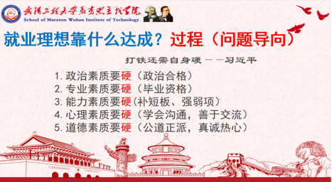 陈俊鼓励大家要将就业目标建立在自身兴趣之上,及早地明确自己的就业目标。同时,他引用习近平总书记的重要讲话“打铁还需自身硬”寄语青年,希望同学们分别从政治素质、专业素质、能力素质、心理素质、道德素质五个方面全面锤炼过硬本领,坚持问题导向,对标就业需要,敢于正视和查找自身不足,注重将功夫下在平时,在日常学习生活中有意识、有针对性地提前补短板、强弱项,变扬长避短为扬长补短,努力成为一名政治合格、品学兼优、公道正派、热心真诚的新时代优秀青年。