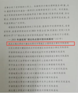 (通讯员王威)日前,中共湖北省委宣传部通报了2021年全省“理论热点面对面实践基地”(原“理论热点面对面示范点”)建设工作情况,我校对口建设的鄂州市鄂城区古楼街道“理论热点面对面实践基地”蝉联优秀实践基地,在12个优秀基地中名列第一。