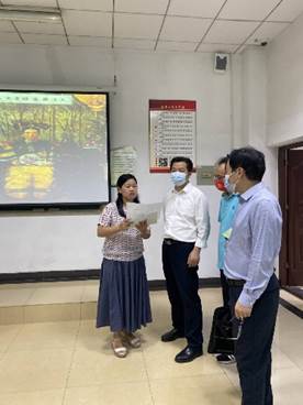 (通讯员:王红梅)8月29日是本学期学生返校后第一天正式上课的日子,早上7点40分,学院院长曹胜亮、院党委书记舒先林、副书记陈俊、副院长常城、教学秘书王红梅等组成的教学督查小组来到教学楼,对教师到岗、学生出勤、课堂秩序和教学设备的运行情况进行了全面检查,查看了教师准备的相关教学材料,包括课程教学大纲、教学日历、教案、教材、教师手册等,查看了教师教学状态、学生到课,多媒体设备运行以及疫情防控等情况,并对检查结果进行了详细记录和分类统计。